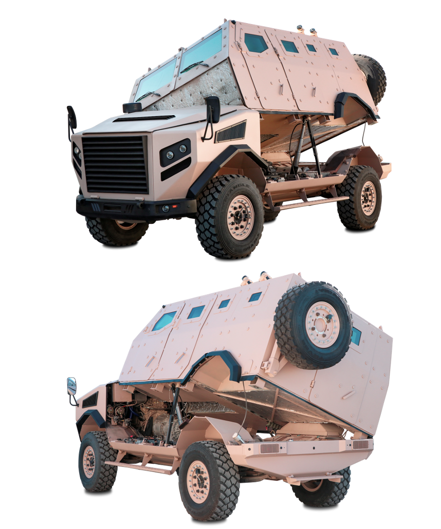 Our MCSV is engineered for demanding operations in complex and high-risk environments. Designed for patrol, reconnaissance, command and special military missions, it combines high mobility with advanced protection and mission-ready technology. A reinforced vehicle architecture, validated through numerous test scenarios, ensures maximum crew safety while maintaining operational flexibility.