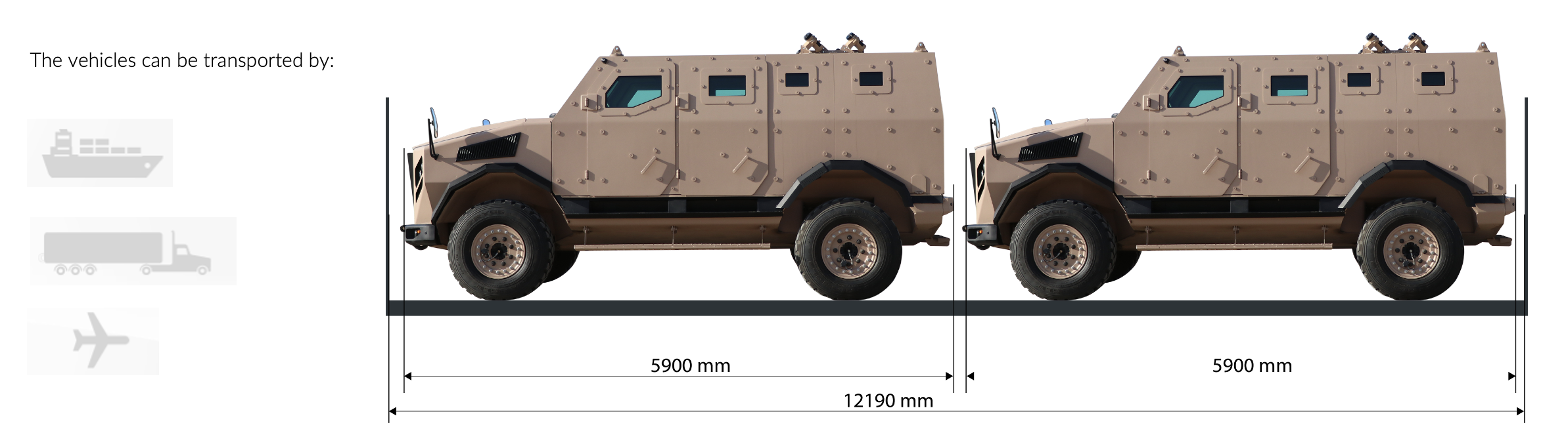 The platform is available in multiple variants and supports a wide range of standardized and optional systems. It is designed for efficient transport by road, rail and sea – the vehicle ensures rapid deployment and reliable performance across diverse mission profiles.