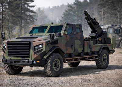 Apart from providing outstanding suitability for personnel transport, various systems can be intigrated into the MINK or mounted on it such as Counter UAS-Systems, Anti-Tank Precision Guided Missile Systems, Loitering Munition Systems or Mortar Systems, just to mention some options.