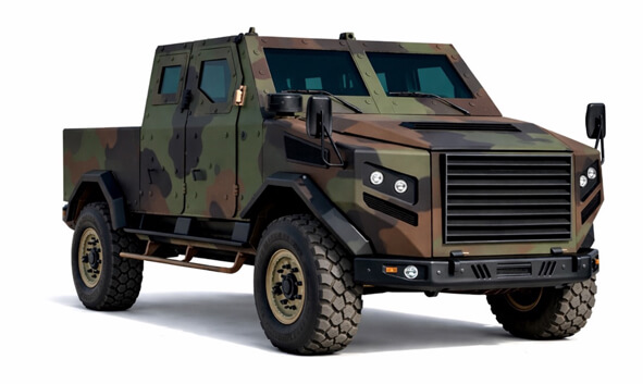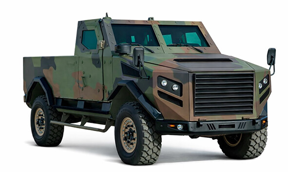 - Radiator grill and engine compartment sides protected to STANAG level 2.