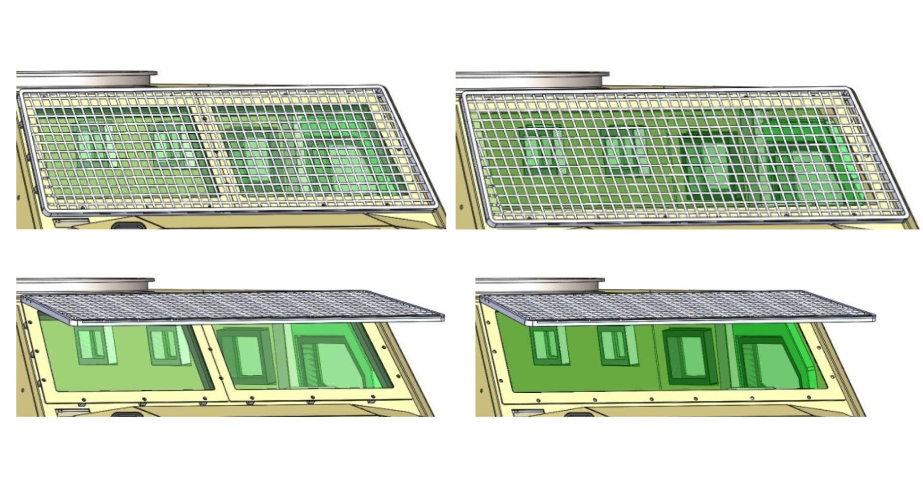 Operable wire mesh on all glass provides an easy access for cleaning of the ballistic glass.