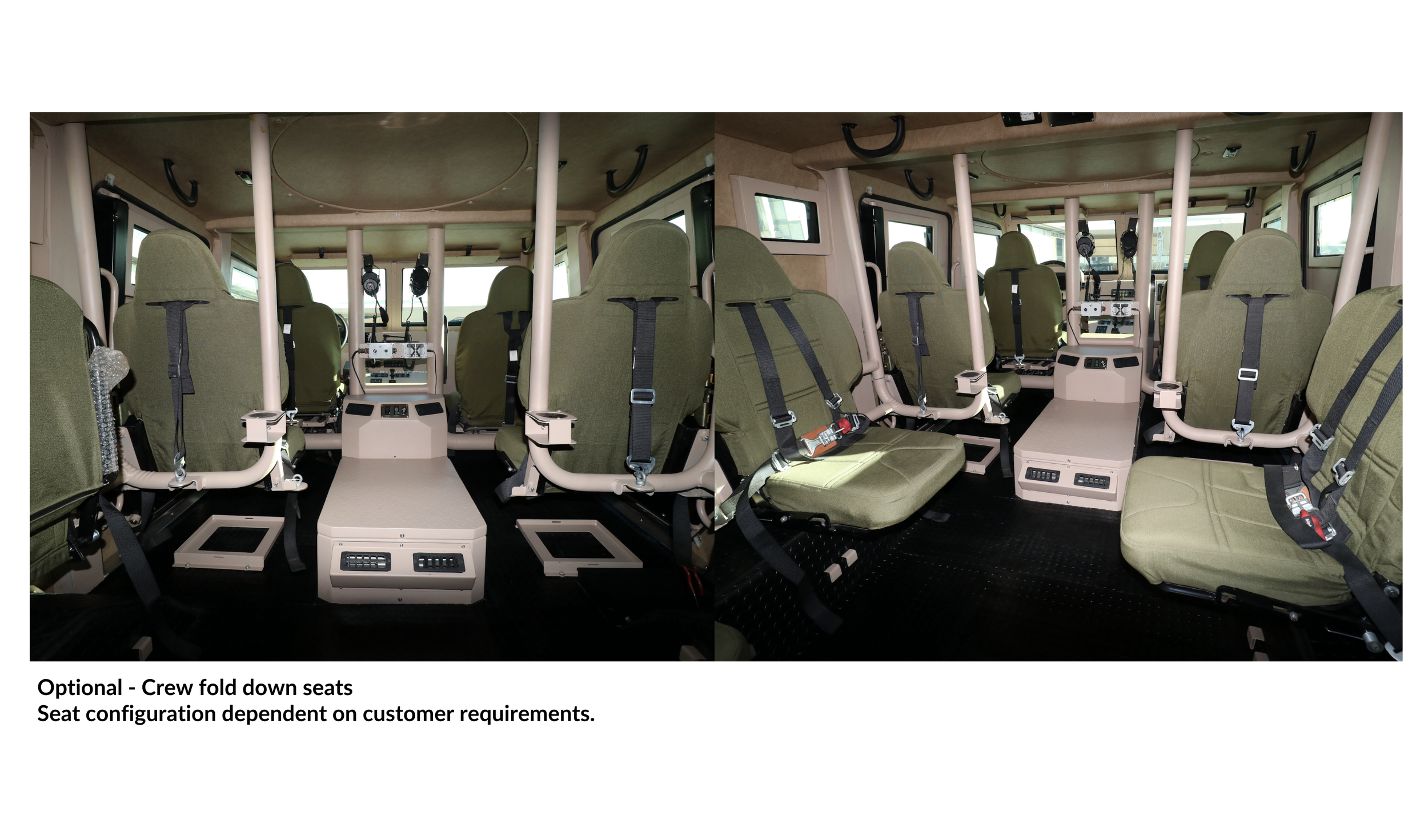 The blast frame and cabin floor act as a blast attenuating double skin, energy absorbing mechanism and provides exceptional safety characteristics for the occupants of the vehicle.