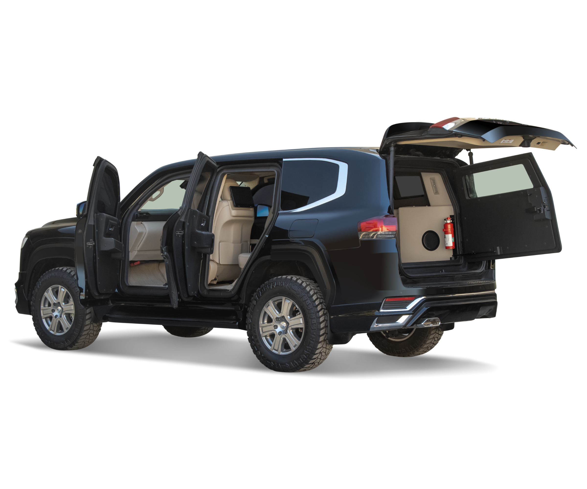 Fully welded monocoque armour capsule provides all round protection. Overall interior ballistic steel structure constructed from large sections of ballistic material provides overlap and reinforcement for impact areas such as doors and glass and reinforces the integrity of the vehicle structure.